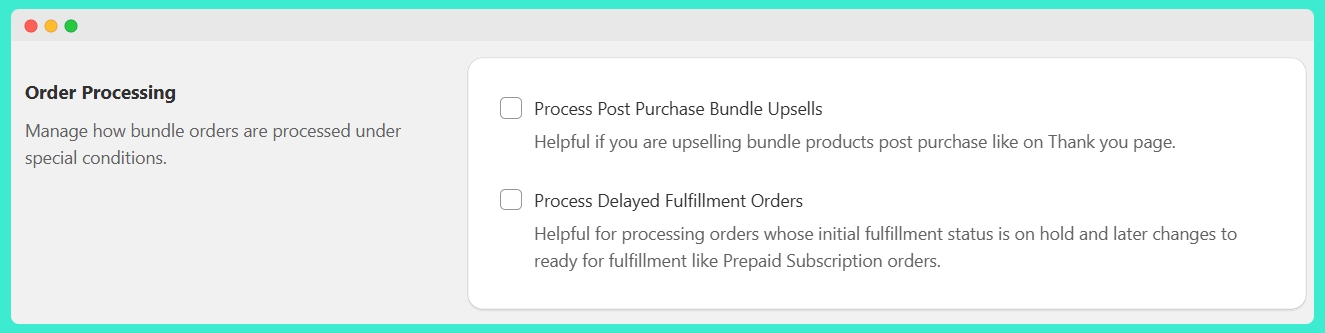 For Post checkout upsell such as post purchase upsell and Thank you page upsell as order is already created you need to tell the app to process order updates as well, hence you need go to the App Settings > Order Processing and activating the option "Process Post Purchase Bundle Upsells" in the order processing card. Happy Upselling