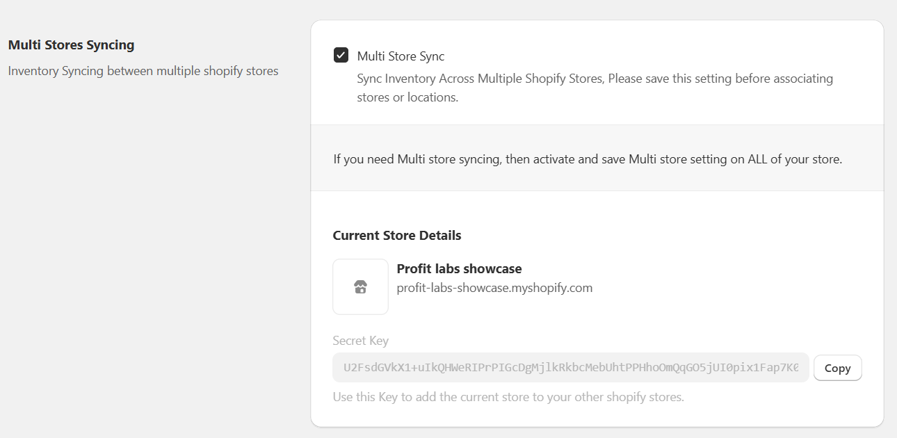 This secret key is used to securely connect your other stores and verify that you have access to them.