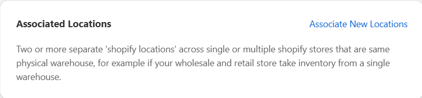 Next, you need to associate Shopify locations that represent the same physical warehouse across your stores.